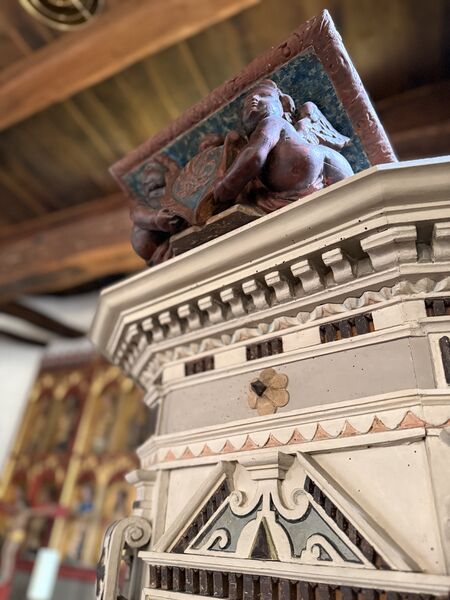Leider kam es trotz der aufwändigen Komplettsanierung der Fassade zu Abplatzungen des Putzes mit Schwerpunkt am Turm. Entsprechend der Empfehlungen des Amtes für Bau- und Kunstpflege wurden nun in 2017 die Gefache im Turm vollständig mit Klinkerhintermauerung erneuert. Dieses Bauvorhaben wurde von der Gemeinde bezuschusst.