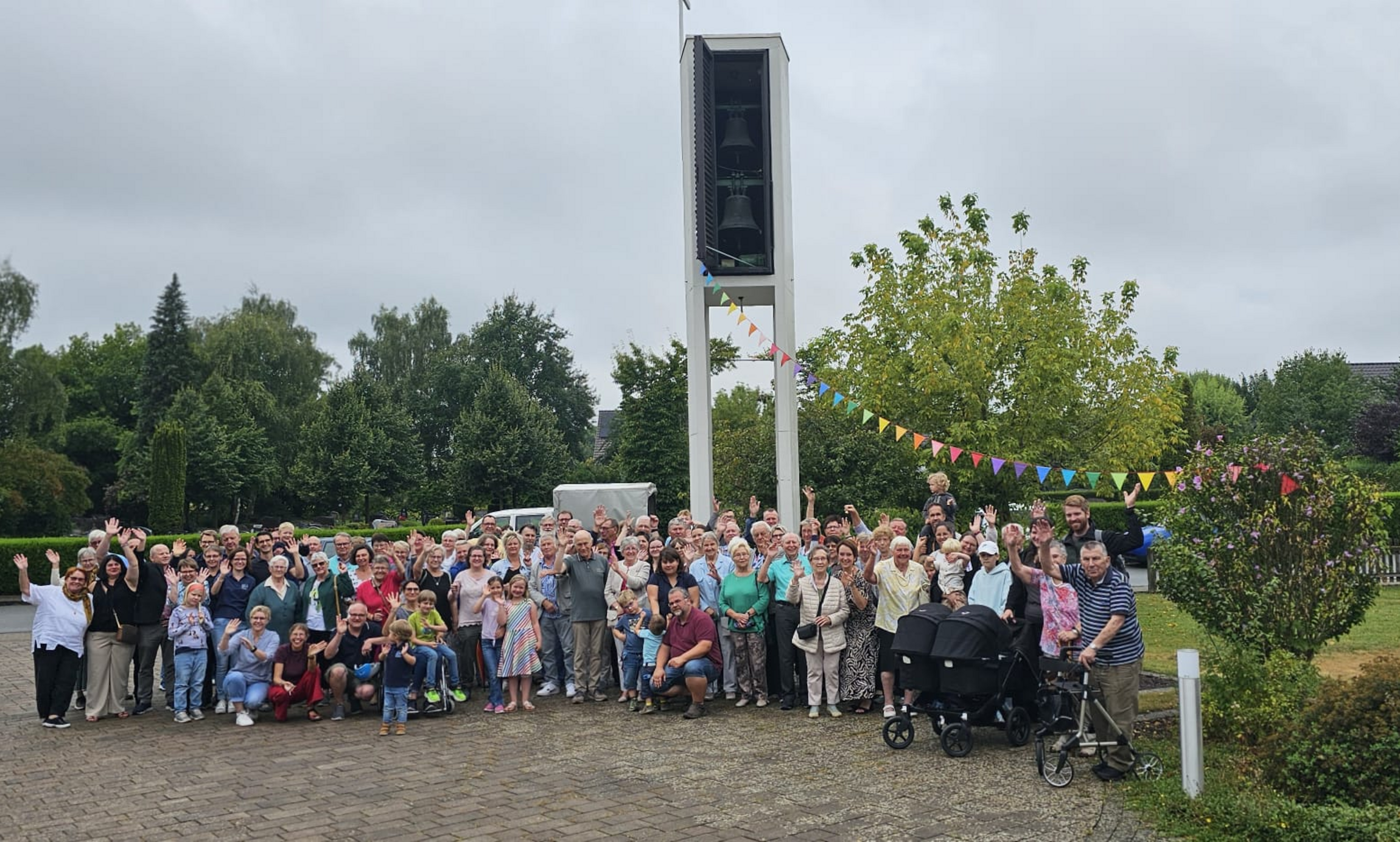 Den Festgottesdienst, der eigentlich rund um den Glockenturm stattfinden sollte, hatten wir aufgrund des Wetters in die Kirche verlegt, aber das änderte nichts daran, dass Pastorin Schumacher und Altpastor Hilleke einen festlichen Gottesdienst mit der Gemeinde feierten. So war es doch Pastor Hilleke, der vor 50 Jahren, am 18. August 1974, die Glockenweihe vornahm. Wie wunderbar, dass er dadurch persönlich über die Planung und den Bau unseres Glockenturms und die Anfertigung der zwei Glocken aus der Heidelberger Glockengießerei berichten konnte.